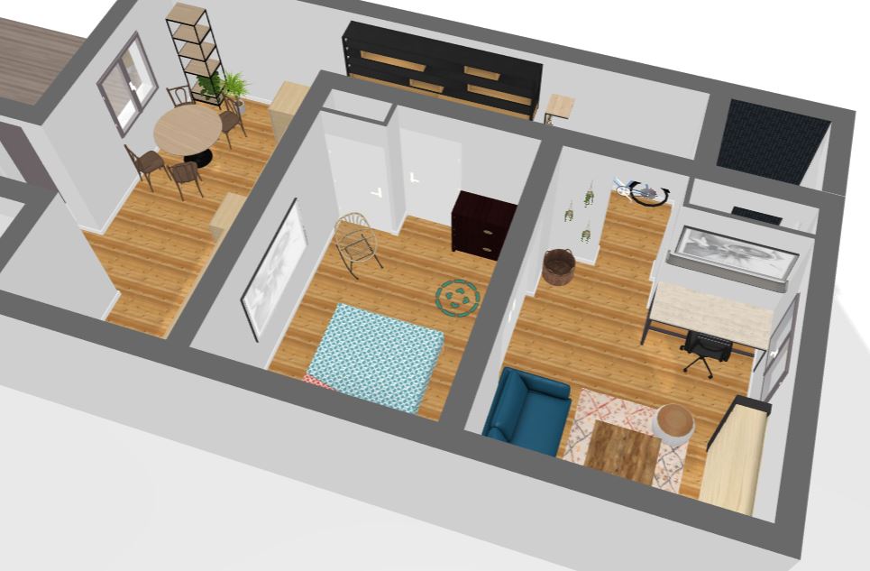 Pour cette mission c’est de créer des planches inspirations, plan en 2D, 3D et une liste d’achat.